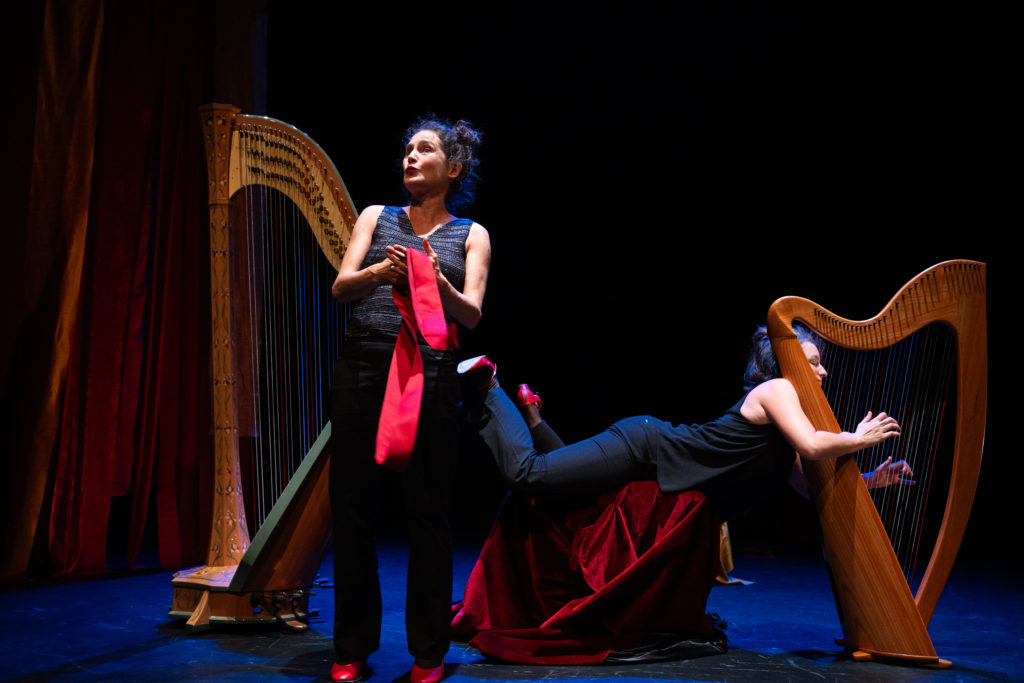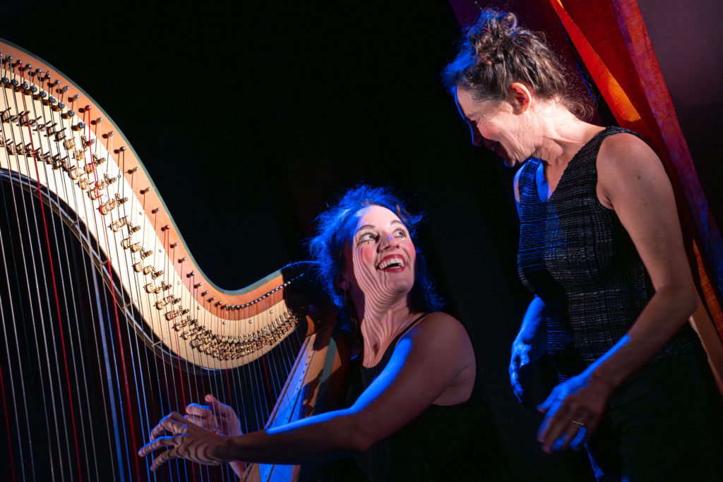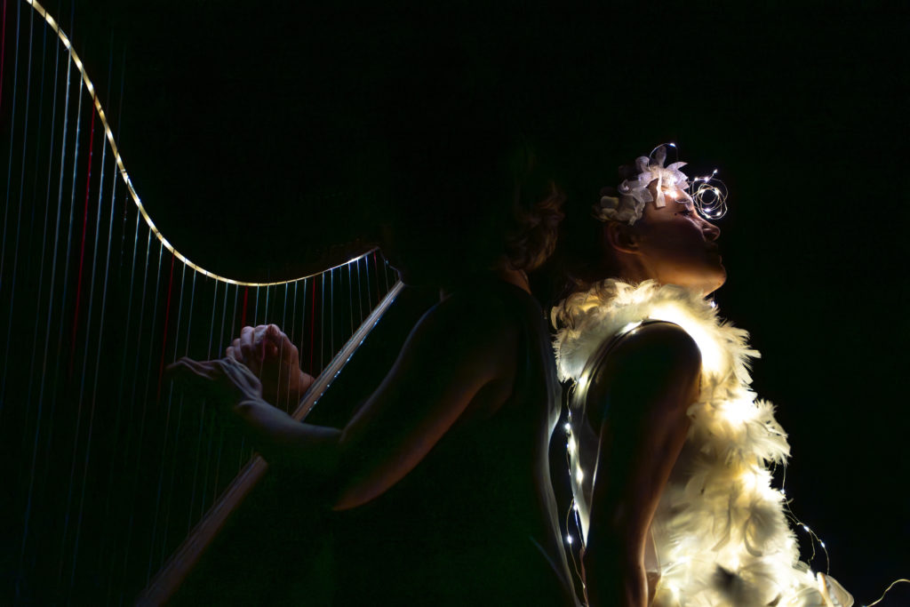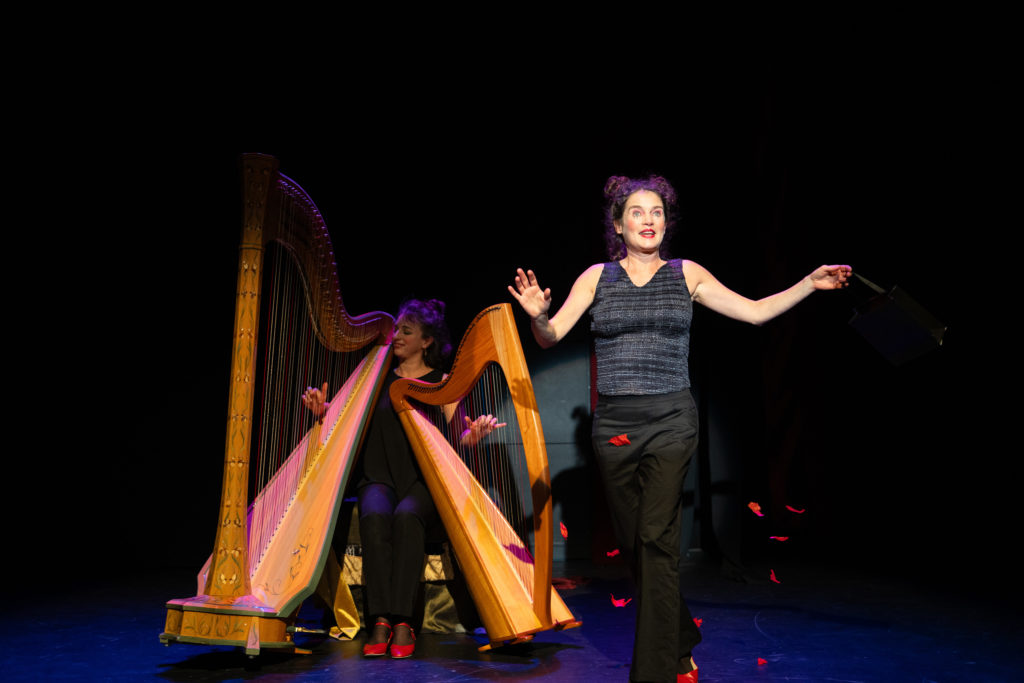 Conception et jeu : Laure-Anne Dayer (voix) & Marie Trottmann (harpes) mise en scène : Pierre Miserez Lumière : Philippe Maeder i Scénographie : Natacha Jaquerod maquillages : Katerine Zingg